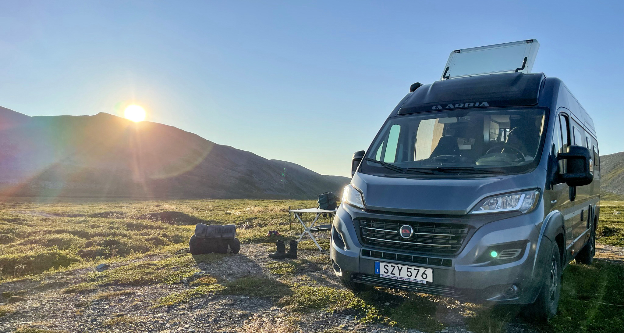 Der er flere grunde til, at valget faldt på en Adria Twin Supreme 640 SGX. En af dem er dens manøvredygtighed på mindre veje i skovterræn. "Nogle gange ender vi på dårligere veje, end vi havde forventet, som den gang ved Tre-landsstenen, hvor vi stødte på et sporvognskøretøj fra den norske hær. Takket være den kompakte størrelse, klarede vi det, men det var nu alligevel en lidt for spændende situation," griner Ewa. Under den justerbare seng i bagenden har de konstrueret et sikkert sted til hundene. "Vi har et specialbygget hundebur på gulvet, som er både praktisk og sikkert. Sengen kan ikke sænkes helt ned, men nok til at vi har en behagelig soveplads, som er nem at kravle op og ned fra. Nogle gange besøger vi venner, der ikke har ekstra plads, er allergiske over for, eller ikke er så glade for, hunde. Så fungerer vores van som et gæsteværelse. "Van'en giver os stor fleksibilitet. For os, der nyder et aktivt liv med dyr og natur, er det helt perfekt," konkluderer Ewa Jonsson.