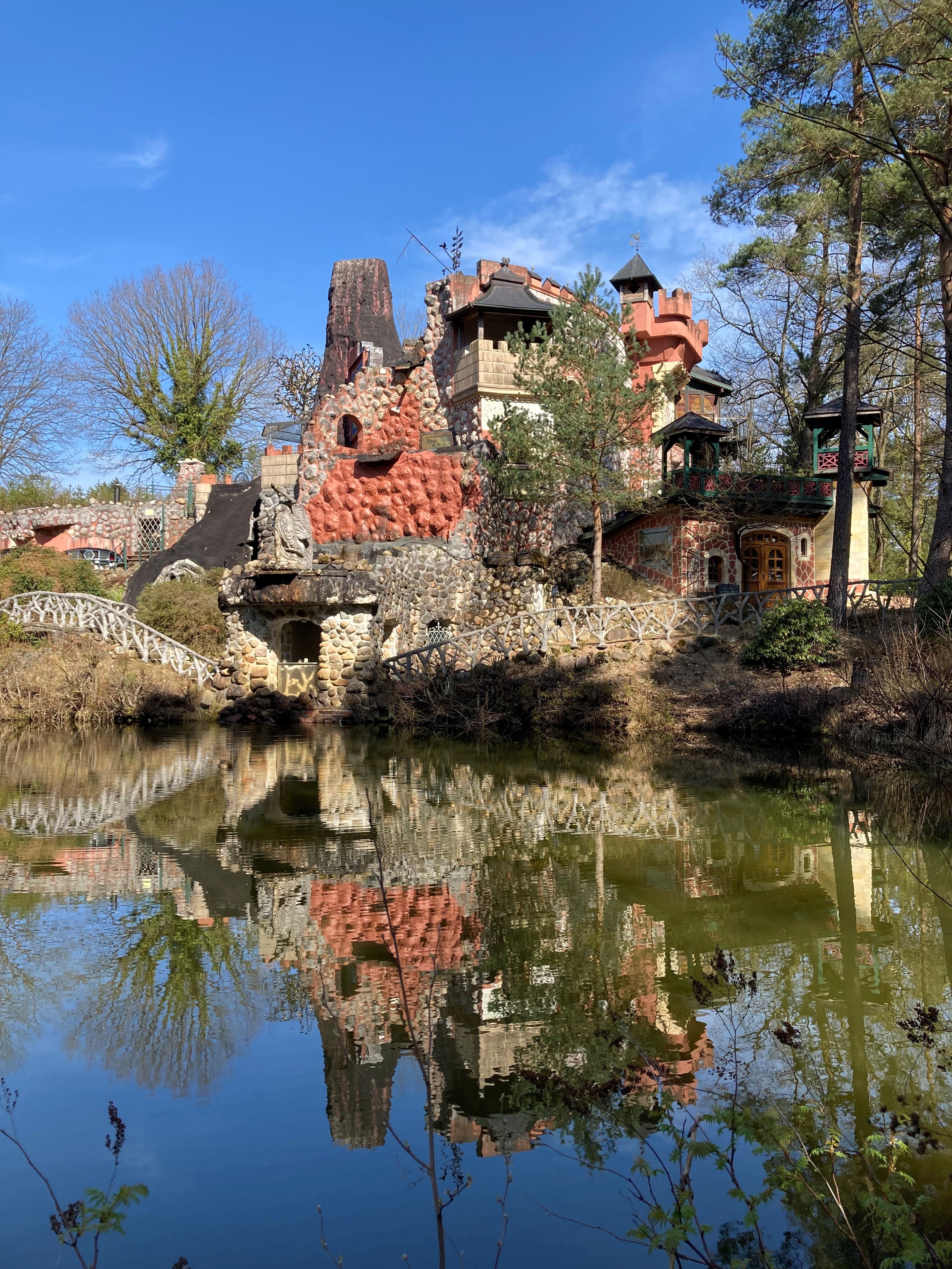 I "vulkanens indre" finder du hekse kælderen med egen bageovn og fadølsanlæg og i riddersalen er der håndskårne træmøbler og de fineste lofts- og vægmalerier. Selve "slottet" er så detaljeret og udsmykket, at batteriet på telefonen næsten løb tør. Og så har vi slet ikke snakket om parken med alle citaterne og jern skulpturerne. Fantastisk for både børn og voksne. Stedet SKAL simpelthen opleves.