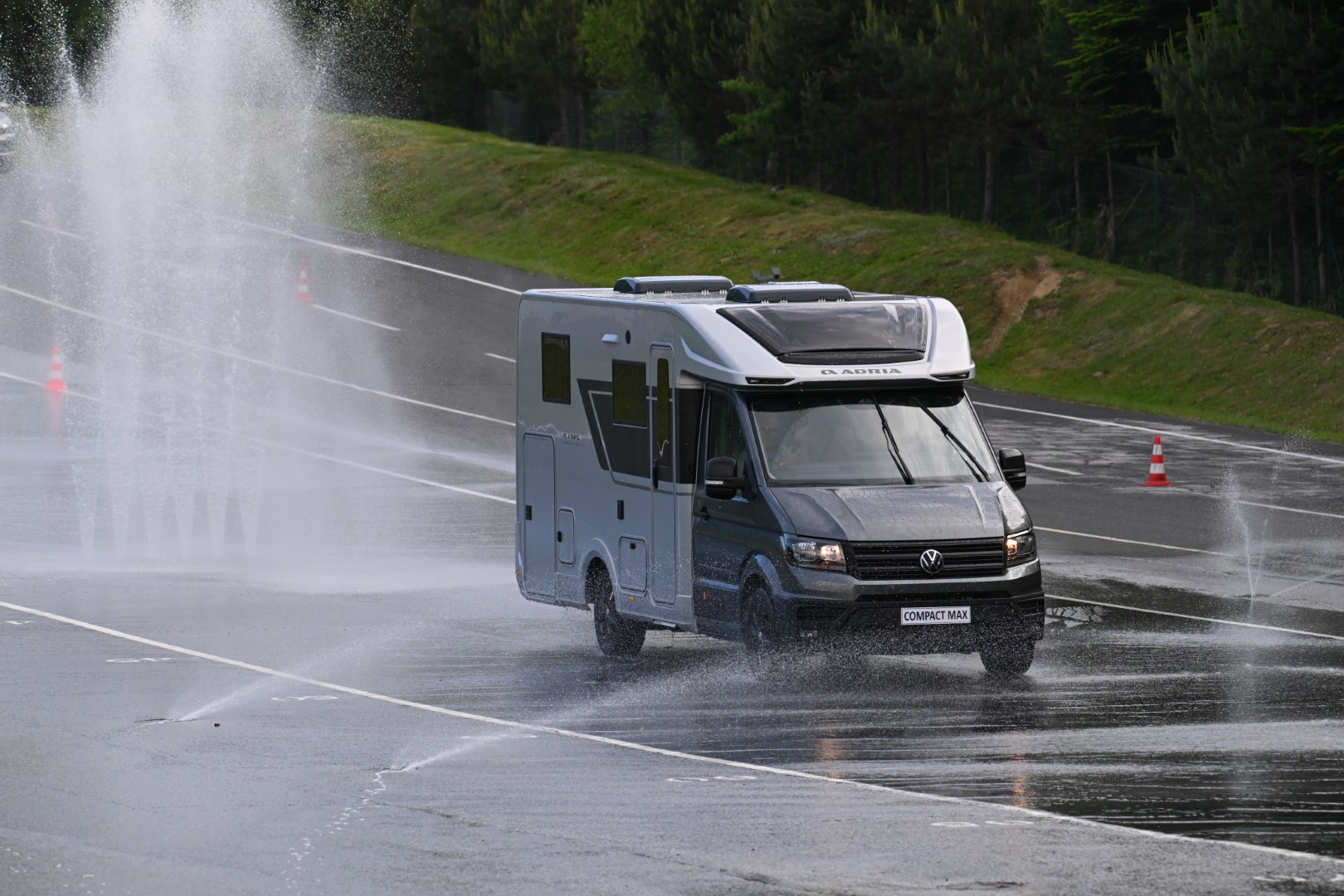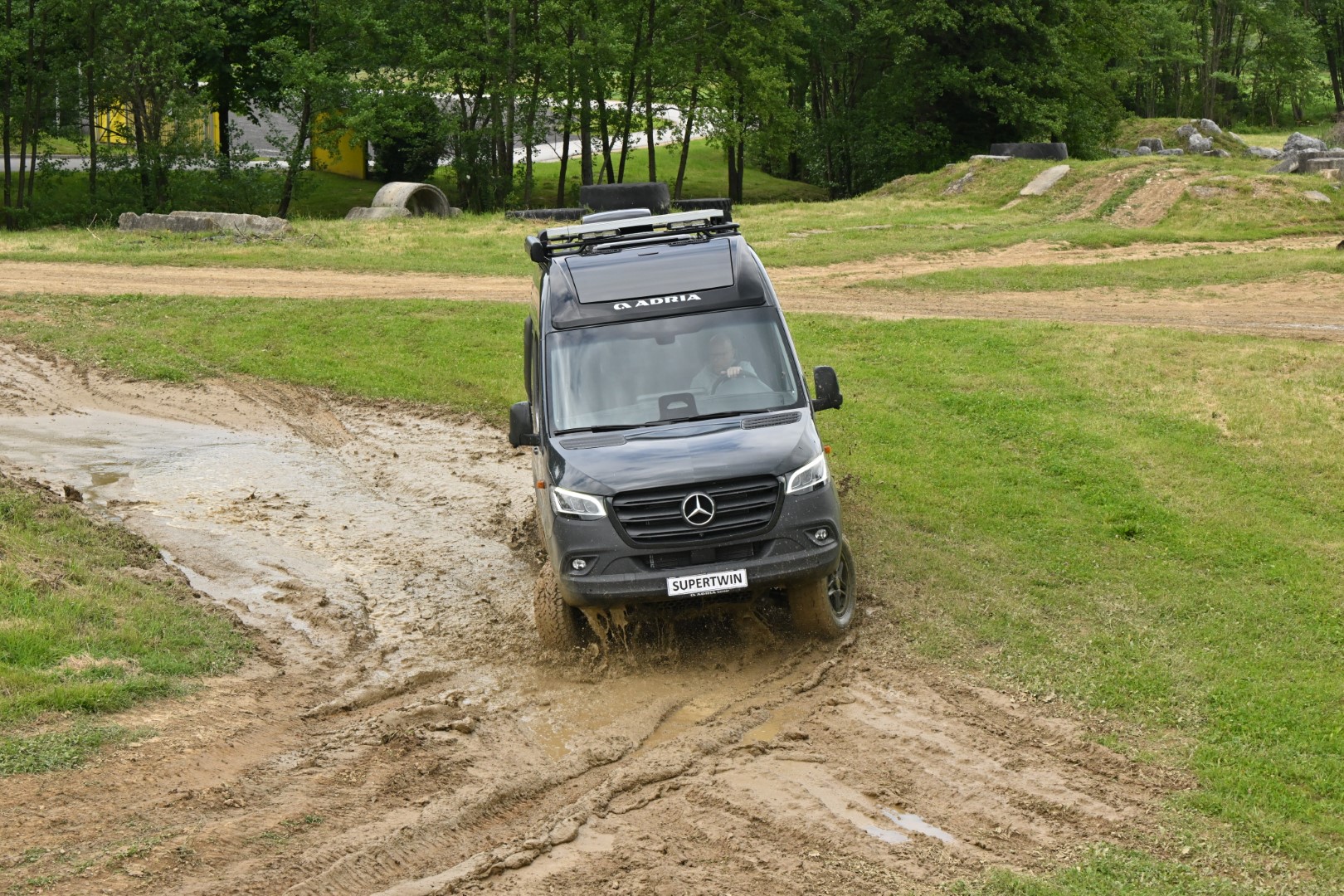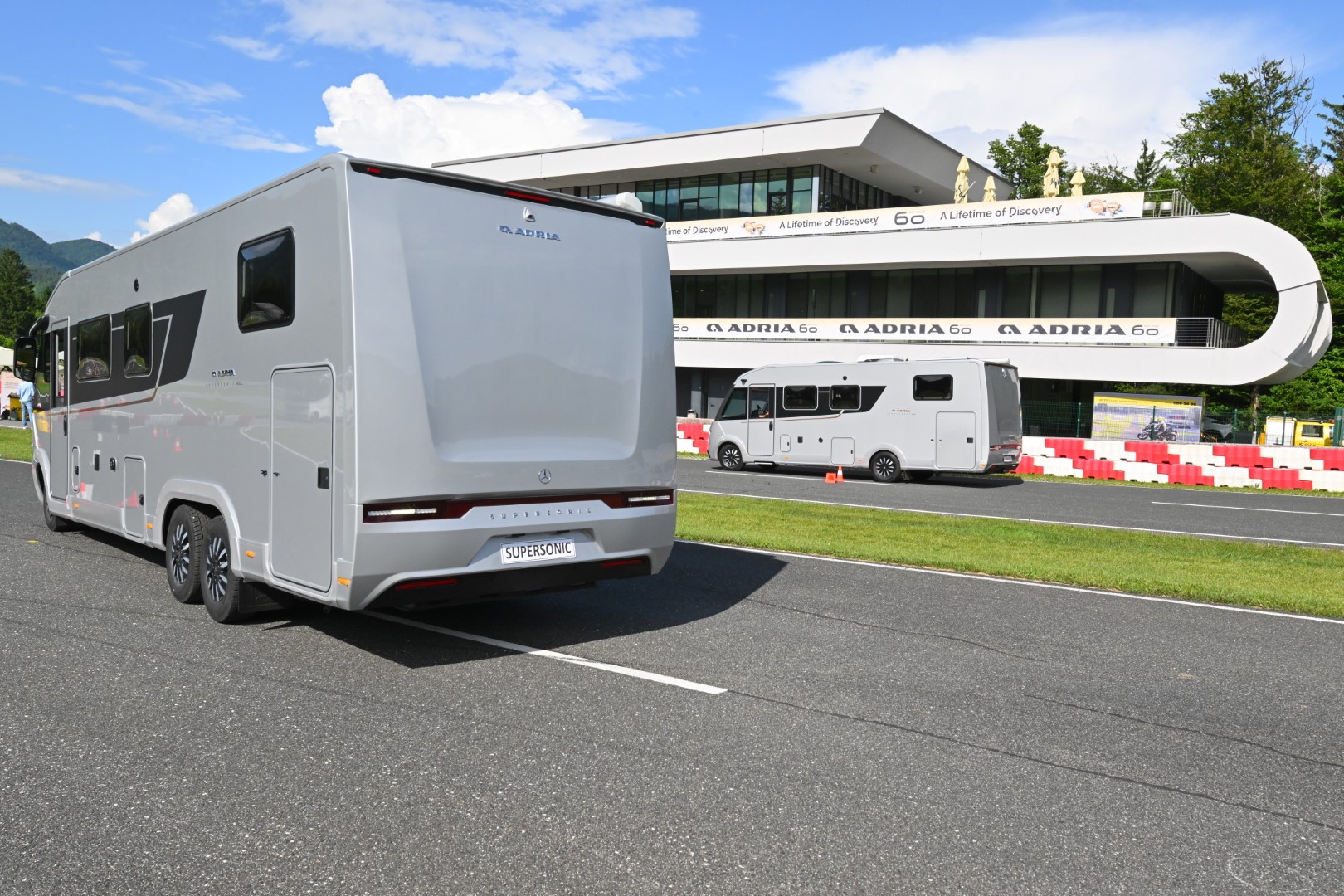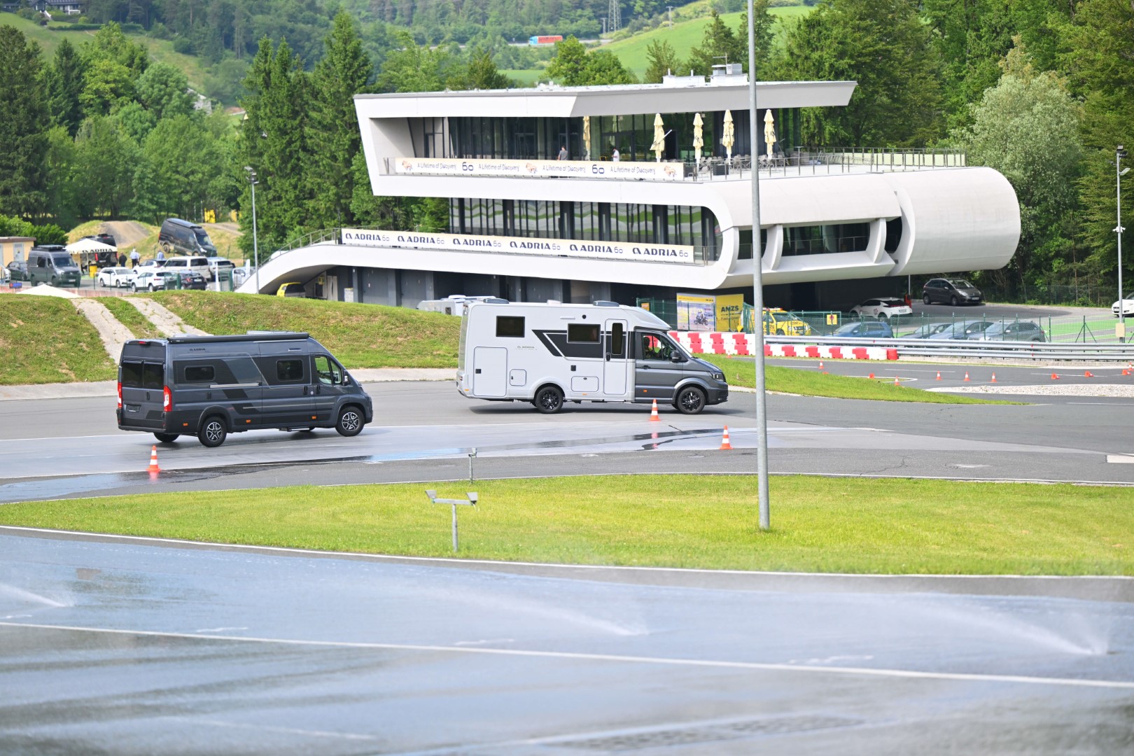 Testbanen "Vransko AMZS" skruede op for adrenalinen. En times kørsel fra Novo Mesto fik gæsterne her mulighed for at teste både deres egne evner og vores køretøjer – fra udfordrende offroad-spor i Supertwin 4x4 til undvigemanøvrer og dynamiske køreoplevelser. Her oplevede de på egen krop, hvor levende og alsidig en Adria virkelig er.